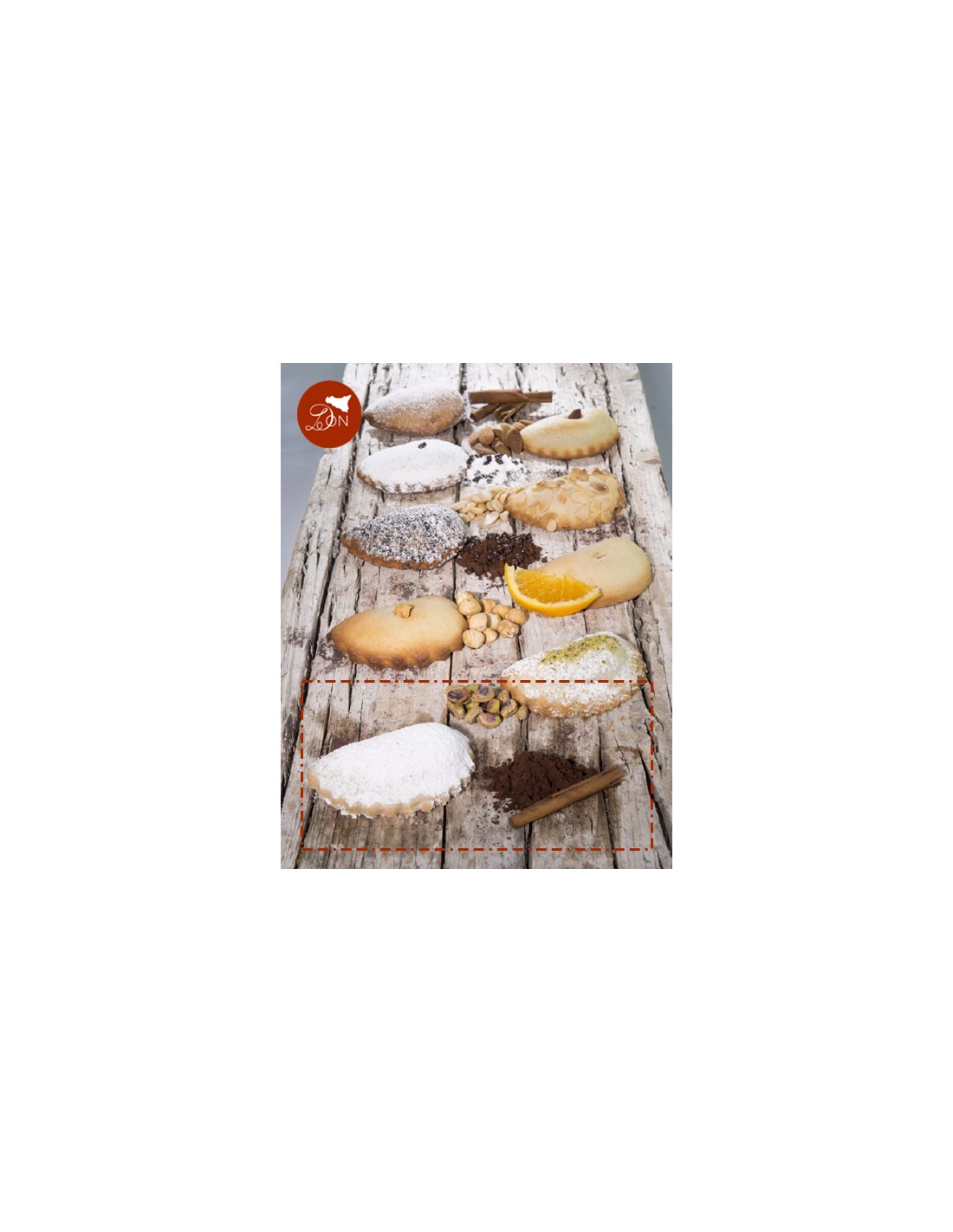 - Allergeni: farina di frumento, mandorle, pistacchio, soia.